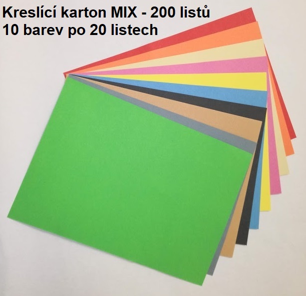 - Kreslící karton barevný A4 180g - 200 listů, mix 10 barev (20x10 barev)